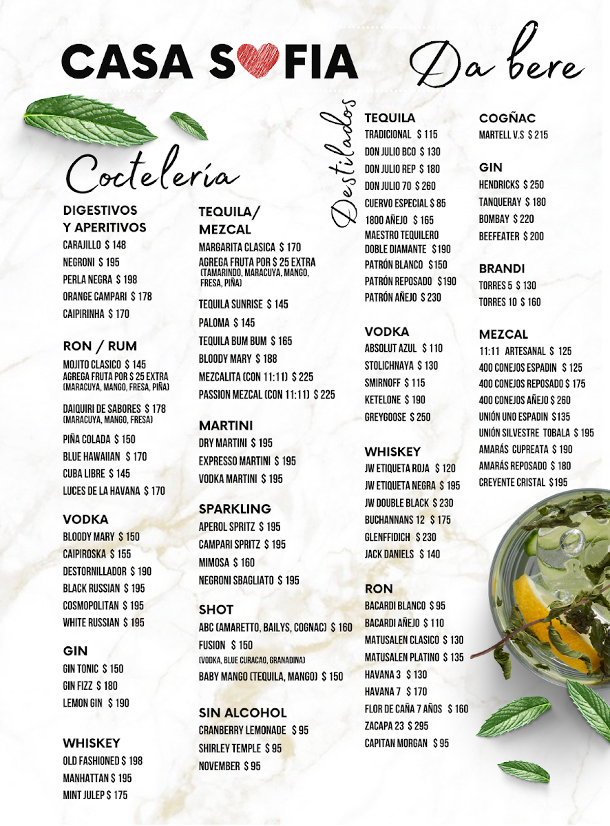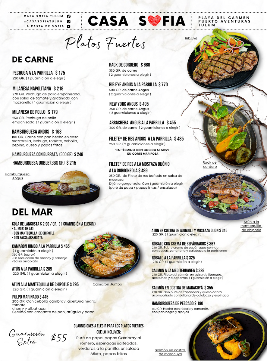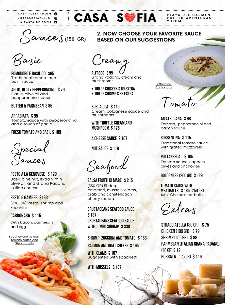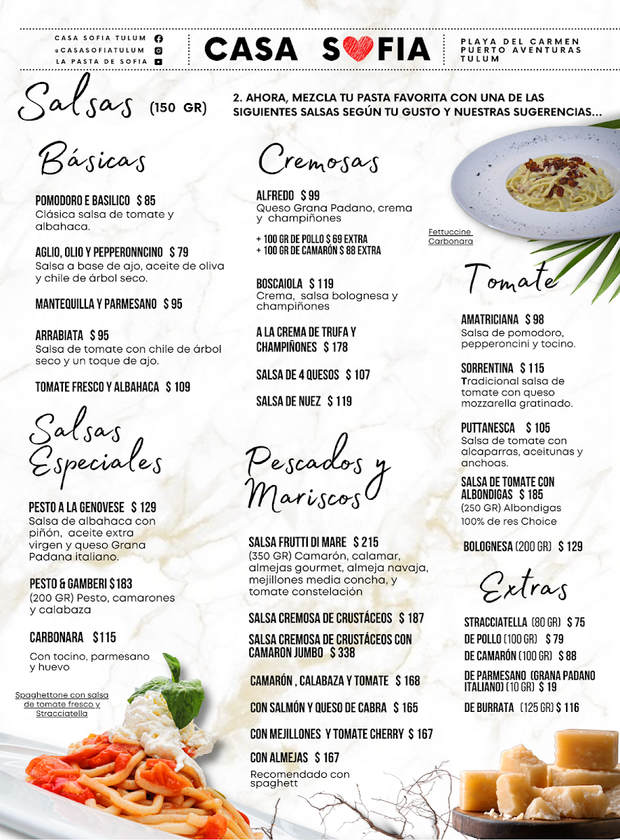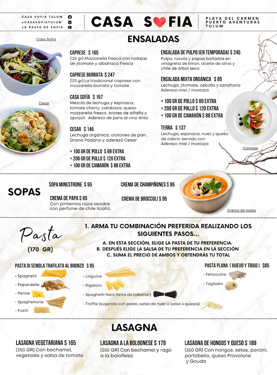 Restaurante Pizzeria Casa Sofia Tulum Menu